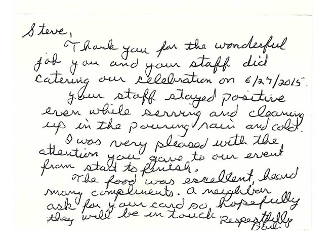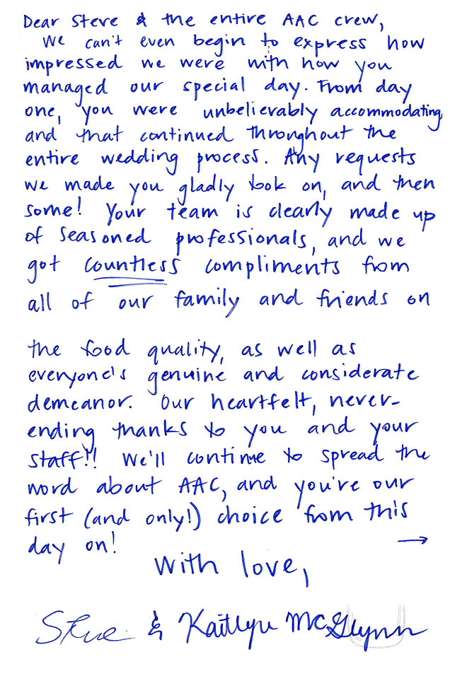 Our catering specialist Mary Lynn will guide you through all aspects of your event.